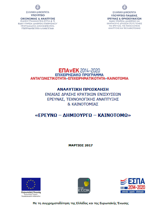 Ολοκληρώθηκε την Πέμπτη, 15 Ιουνίου 2017, στις 16:00 η υποβολή αιτήσεων χρηματοδότησης για τον Α΄ κύκλο της ενιαίας δράσης “ΕΡΕΥΝΩ–ΔΗΜΙΟΥΡΓΩ–ΚΑΙΝΟΤΟΜΩ”………..